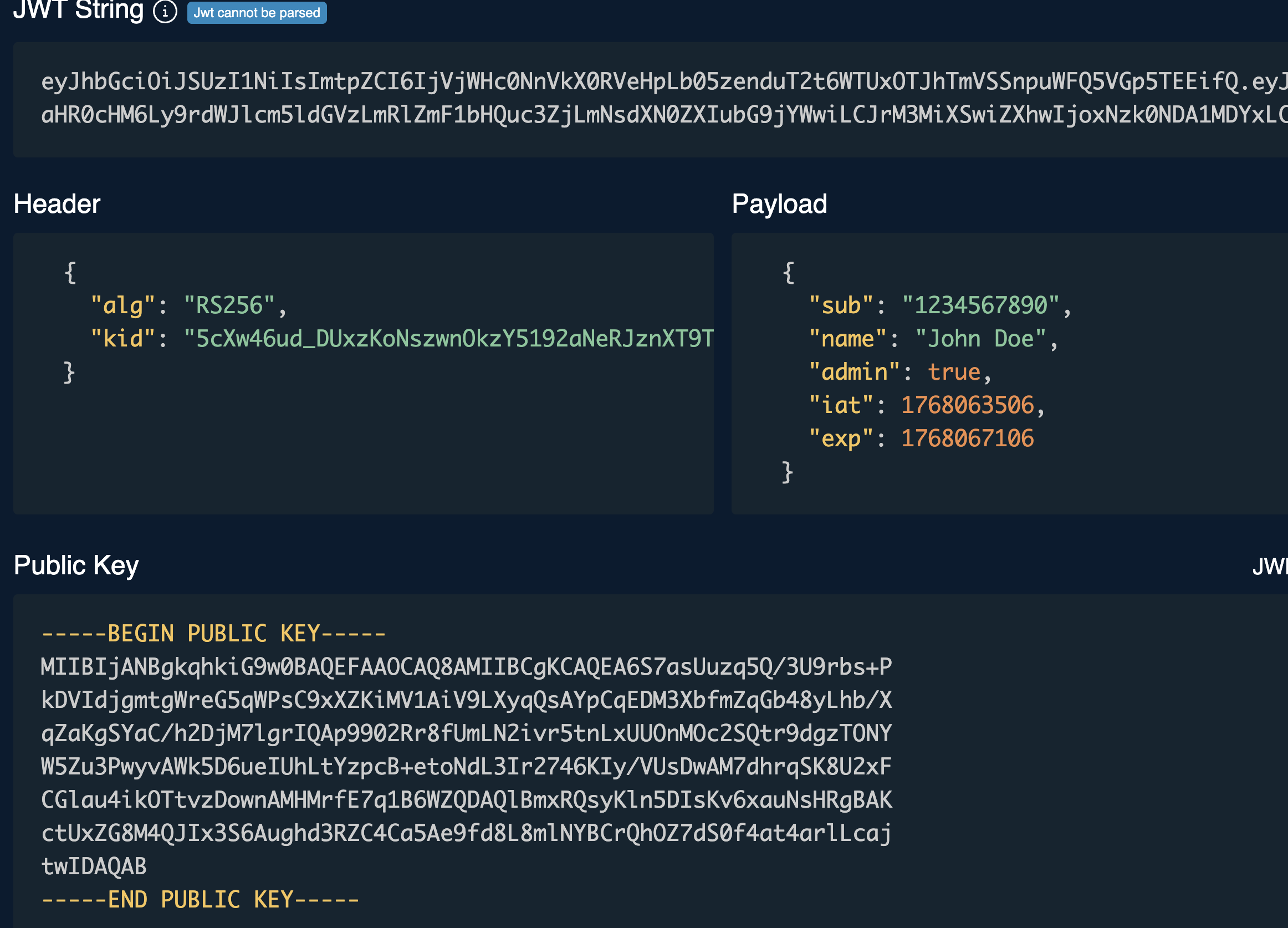 We can take the JWT from this and use tools like https://token.dev/ to decode it and see the parameters: