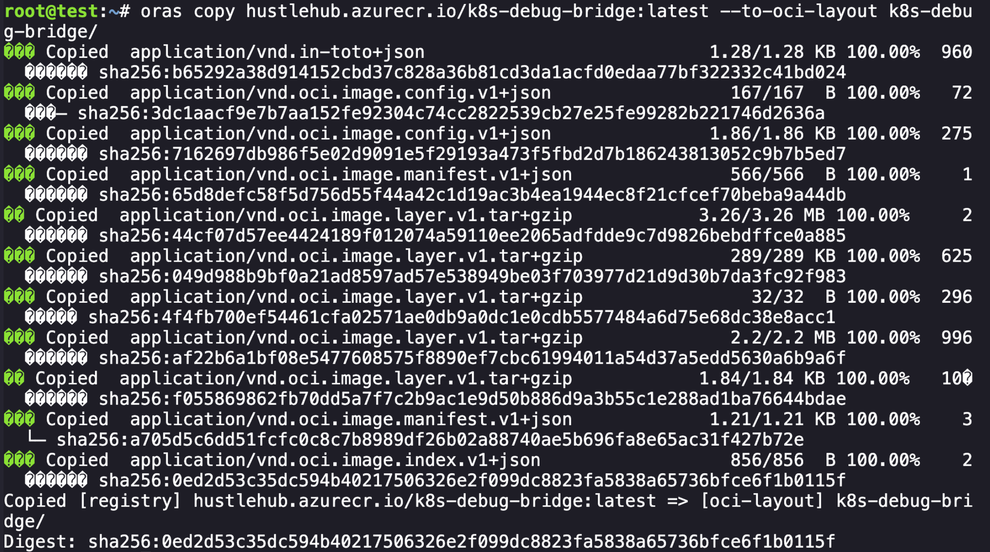 oras copy hustlehub.azurecr.io/k8s-debug-bridge:latest --to-oci-layout k8s-debug-bridge/