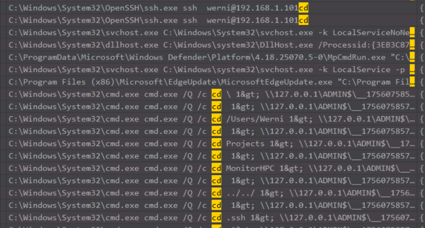 There was lots of normal noise that we need to sift through to understand what events were generated by the attacker. As they SSH in as werni