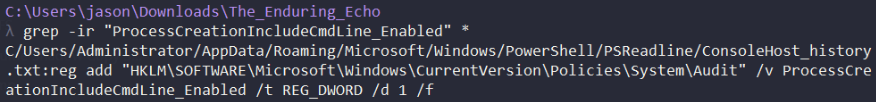 , we can search for this in the evidence files and we see the command appearing in PowerShell console history logs.