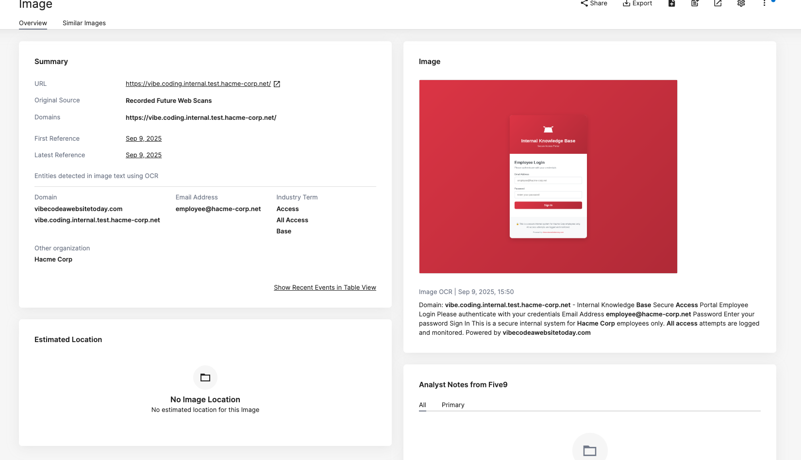 , we observed the URL vibe.coding.internal.test.hacme-corp.net
