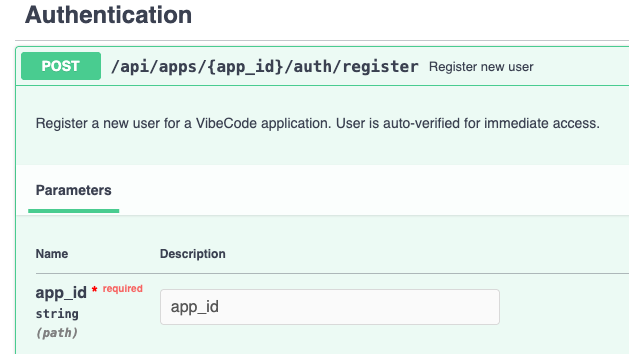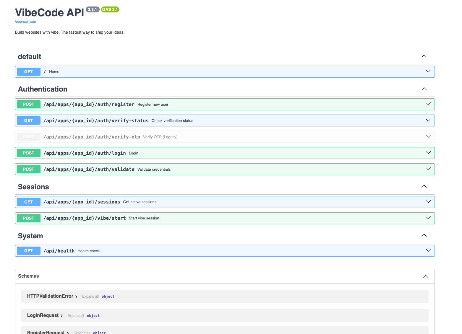 → Authenticate with email/password via VibeCode, create a session./chat