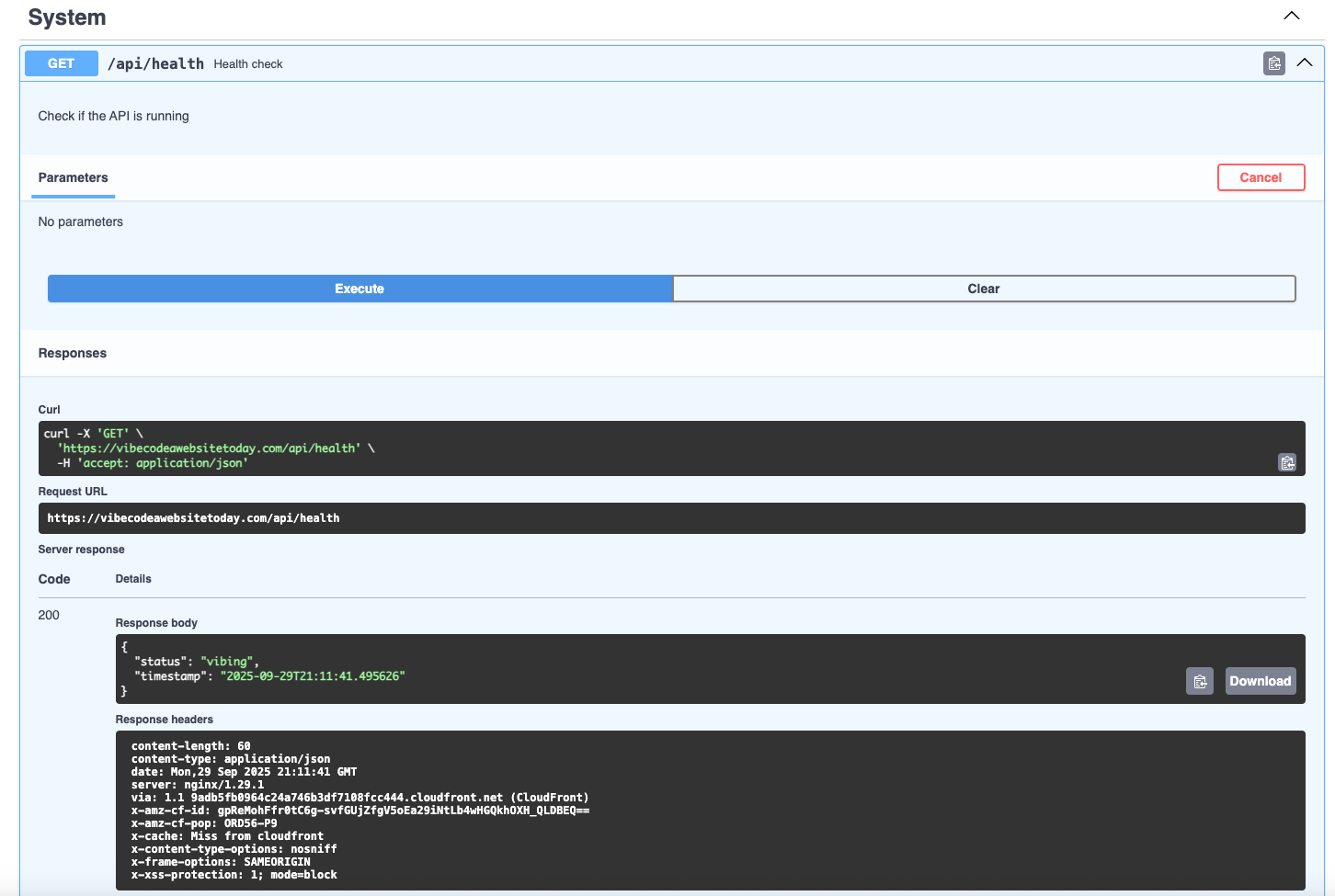 Poking around through these endpoints, we get an option to test and execute them, and can see from the health